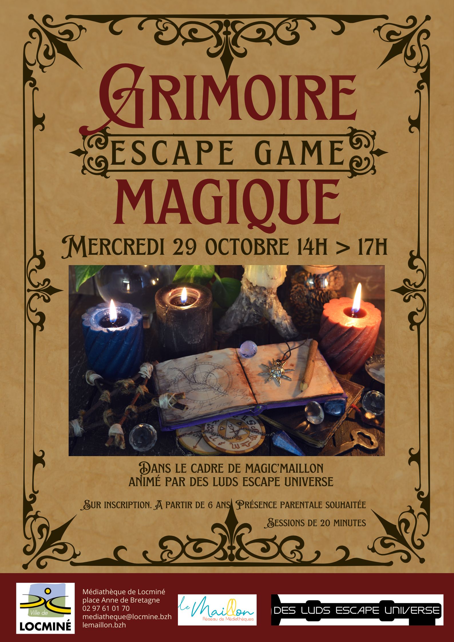 La sorcière a oublié un ingrédient essentiel à sa potion. Il faudra ouvrir son grimoire, tester ses potions, fouiller des bocaux plutôt. .. beurk ! Et lui apporter le précieux ingrédient. Dans un univers étrange mais jamais effrayant. Animé par Des Luds Escape Universe. Sur inscription. Durée: sessions de 20 minutes.